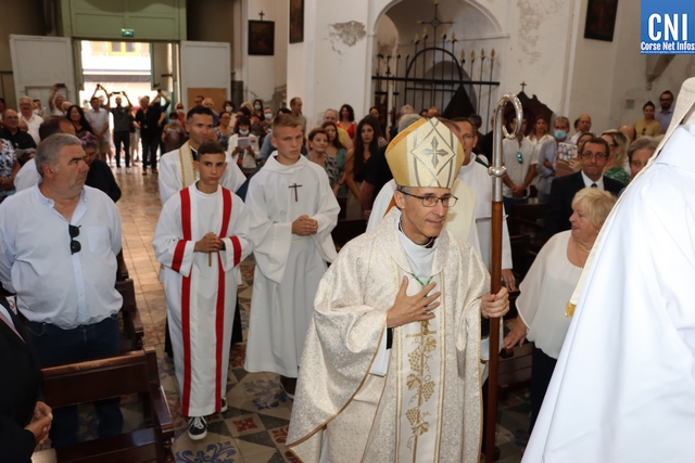 Dans son homélie, l'Évêque de Corse devait parler de foi chrétienne, de charité, donner, recevoir, prendre soin des autres, avant de s'adresser à Pierre Bertoni