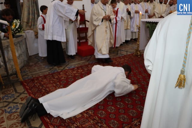 A l'issue devait suivre l'imposition des mains par l'Évêque de Corse et la prière d'ordination avant la remise de l'étole et l'habit ecclésiastique par des membres de sa famille.