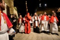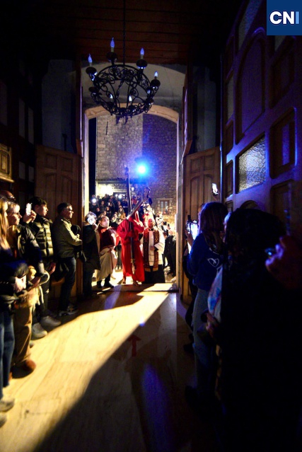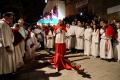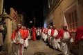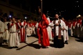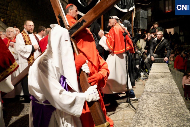 Sur une distance d'environ 1,8 kilomètre, il était entouré d'un cortège significatif : un pénitent en blanc, représentant Simon de Cyrène, ainsi que huit autres en noir, évoquant à la fois le tribunal juif du Sanhédrin et les compagnons de Jésus-Christ, Nicodème et Joseph d'Arimathie.