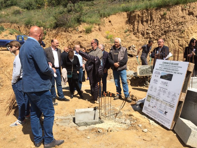 Symboliquement, Lionel Mortini, maire de Belgude avait souhaité que la pose de la première pierre di a custruzione d'una scola e d'un spaziu suprtivu ait lieu ce 5 mai, date anniversaire de la tragédie de Furiani.