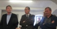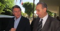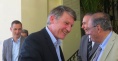 Le candidat PS aux Européennes,Vincent Peillon, entouré d'Ange-Pierre Vivoni, maire et conseiller général de Sisco, et d'Emmanuelle de Gentili, 1ère secrétaire fédérale du PS en Haute-Corse, 1er adjointe à la mairie de Bastia et conseillère exécutive à la CTC.