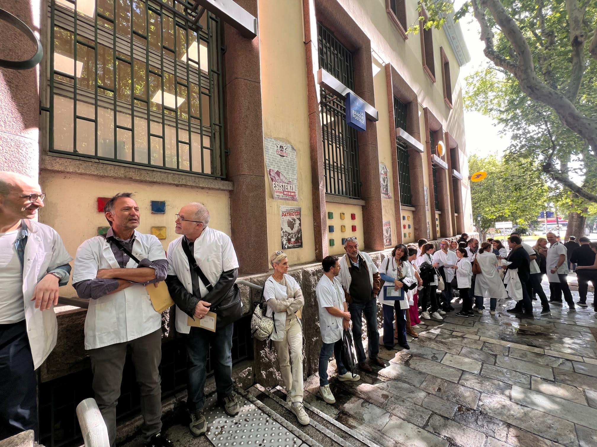 33 praticiens du grand Bastia devant La Poste centrale en attende de poster leur lettre de déconventionnement