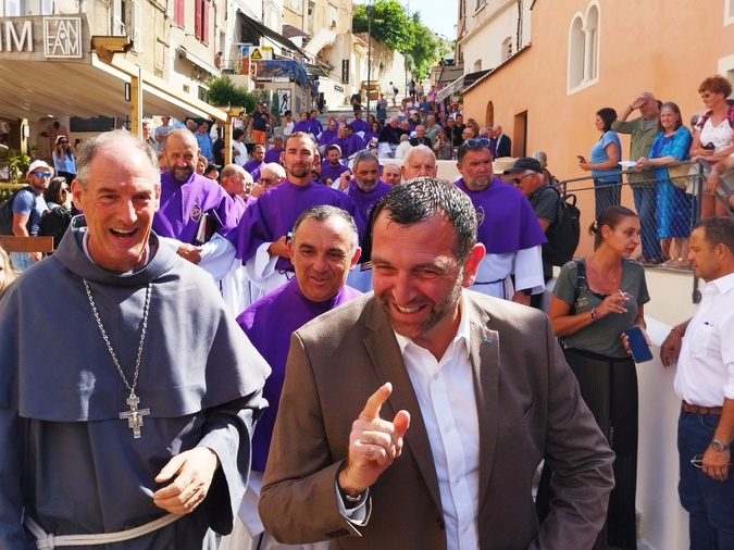 Le maire de Bonifacio Jean-Charles Orsucci, ici en compagnie du cardinal François Bustillo et des membres de la confrérie de Saint-Erasme.