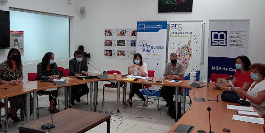 Marie-Hélène Lecenne, directrice de l’ARS, Mariey-Madeleine Guillou, directrice de l’Assurance Maladie de Corse-du-Sud, Maclou Rigobert, son homologue de Haute-Corse, Maria Guidicelli, responsable du Service d’Action Sanitaire et Socuiale à la MSA de Corse et Laetitia Cucchi, présidente de l’Association Inseme ont officialisé, ce lundi 12 juillet en fin de matinée dans les locaux d e l’ARS à Ajaccio, la mise en œuvre concrète du dispositif de prise en charge du deuxième accompagnant d’un enfant malade sur le Continent. « C’est un jour à marquer d’une pierre blanche, souligne, très émue, Laetitia Cucchi, le fruit d’une concertation, d’un combat de plusieurs années pour faire valoir les droits de ces accompagnants, je pense à tous ceux qui ont souffert. »