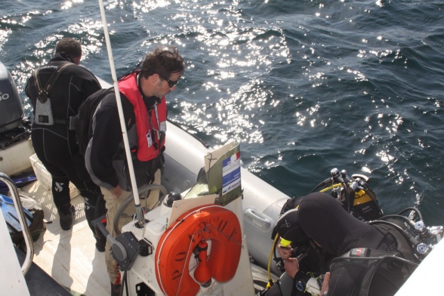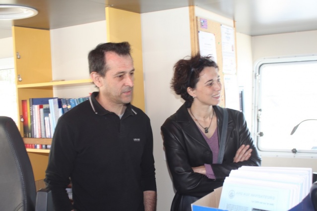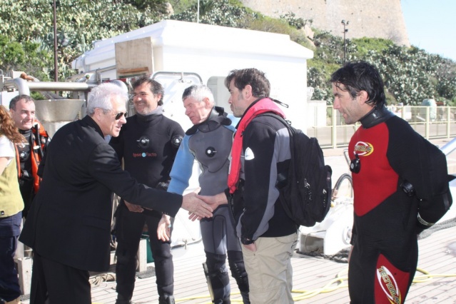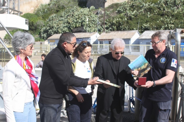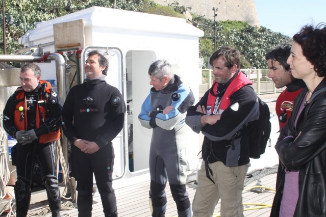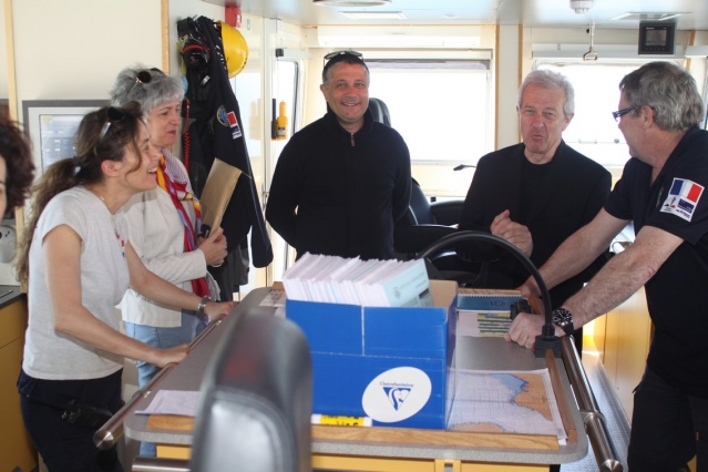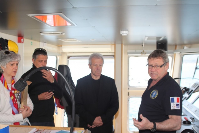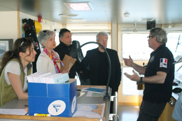 La délégation a été accueillie par le commandant du navire M. Denis Metzger, Mme Franca Cibecchini de la DRASSM et M. Franck Allegrini-Simonetti, archéologue de la CTC.