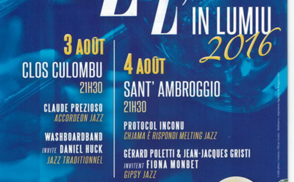 L’association U Timpanu et la municipalité de Lumio présentent la 2e édition de Jazz’in Lumiu qui se déroulera ce mercredi 3 août au Clos Colombu et le jeudi 4 août à la Marine de Sant’Ambroggio