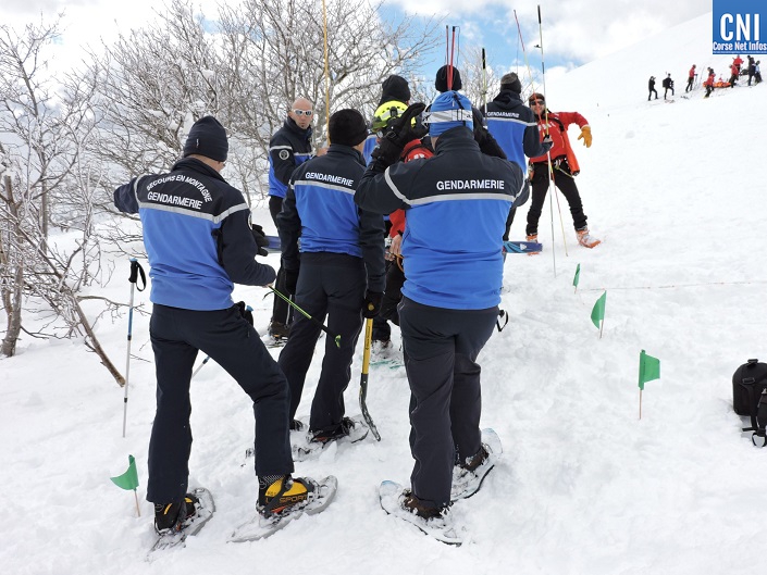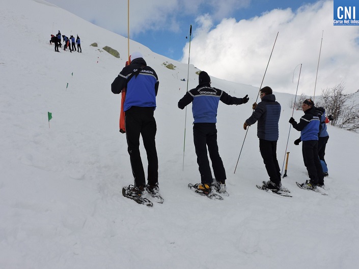 Vingt-quatre gendarmes du PGHM et 19 pompiers du Groupement de Montagne de Corse-du- Sud sont alors mobilisés. A leurs côtés, des médecins du Samu, le tout coordonné par un PC situé au Val d’Ese. Les conditions météos empêcheront les moyens aériens de participer. Cet exercice, virtuel mais qui s’est déroulé dans des conditions réelles, s’est achevé sur le coup des treize heures. « Les risques d’avalanches représentent un réel danger, même en Corse, rajoute le CEN, le risque zéro n’existe pas même si l’on est loin d’autres régions plus dangereuses. Chaque jour, un sondage effectué par les services de Météo France nous donne des indications sur l’enneigement dans les lieux les plus reculés de l’île. »
