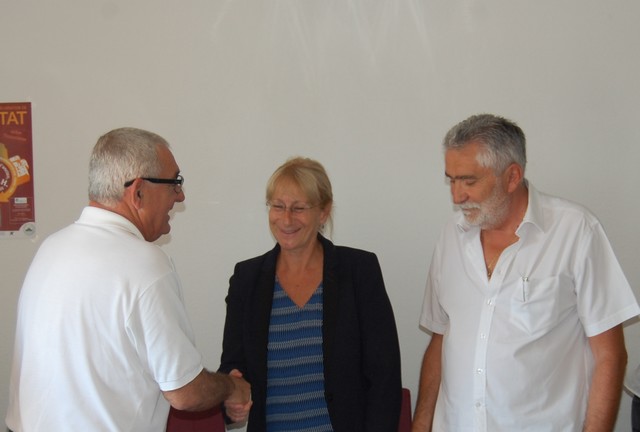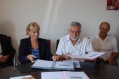 Ambiance décontractée jeudi matin à la Communauté de Communes du bassin de vie de L'Ile-Rousse au moment de la signature de la convention de mise en œuvre du FISAC ( (Fonds d’Intervention pour les services, l’artisanat et le commerce) entre la représentante de l'Etat, Anne Ballereau et le président de la CCBVIR, en présence de Jean-Jo Allegrini-Simonetti, maire de l'Ile-Rousse