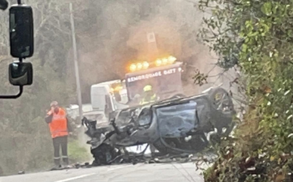 Valle-Di-Rostino : une voiture finit sur le toit et prend feu
