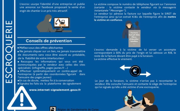 Depuis le dernier trimestre 2020, la Corse connaît une recrudescence d’escroqueries concernant la vente de mini-pelles. 8 procédures ont été recensées depuis le 1er janvier 2021 dont 3 en mars. Cela représente plusieurs milliers d’euros de préjudice pour les...