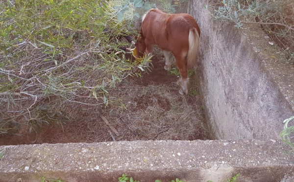 Les pompiers du Centre d'intervention et de secours de Calvi sont intervenus ce mercredi pour porter secours à un poulain victime d'une chute d'une hauteur de 2 mètres et incapable de se sortir seul de sa situation