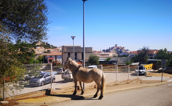 Image insolite que celle de ce magnifique cheval qui, déconfinement oblige s'est autorisé ce vendredi matin une sortie dans le centre-ville de Calvi. Après avoir emprunté la route de "la Villa", nullement craintif, décontracté, l'équidé s'est offert un petit...