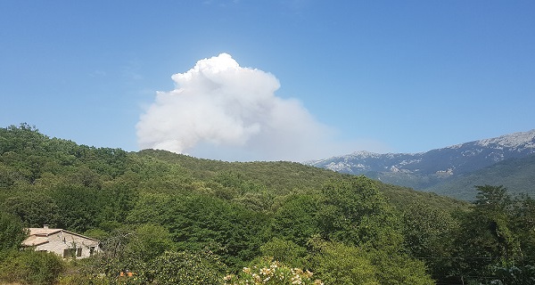 Dès 15h30 un énorme panache de fumée était vu du village de Giovicacce. Très rapidement sa taille est devenue plus importante et les canadaires ont survolé l'espace. On peut se demander à cette heure si les moyens aériens et terrestres seront suffisants pour...