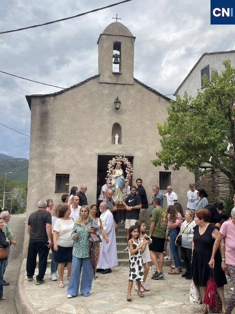 Ce samedi 13 août, Cruscianu était en fête. A l’ombre de sa grand sœur Notre-Dame de Lavasina, célébrée le 8 septembre, la chapelle a été dignement fêtée une semaine plus tard. La chapelle, rénovée, est entretenue par une poignée d’habitants, surtout des villageoises. « On a refait les peintures, changé les bancs mais il y a encore du travail à faire » explique Michèle, une des petites mains du saint lieu. Le père Magdeleine y a certainement célébré sa dernière messe dans le Cap. Après plusieurs années dans ce bijou du Cap Corse, il passe la main à 4 Franciscains qui auront en charge la paroisse et notamment le sanctuaire de ND de Lavasina. Une quinzaine d’enfants se sont rassemblés devant l’autel durant l’office, chanté par les belles voix de l’associu Surghente di vita. Une procession de la Vierge dans les rues du village a suivi. Un apéritif convivial a clos cette belle soirée.