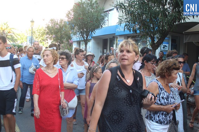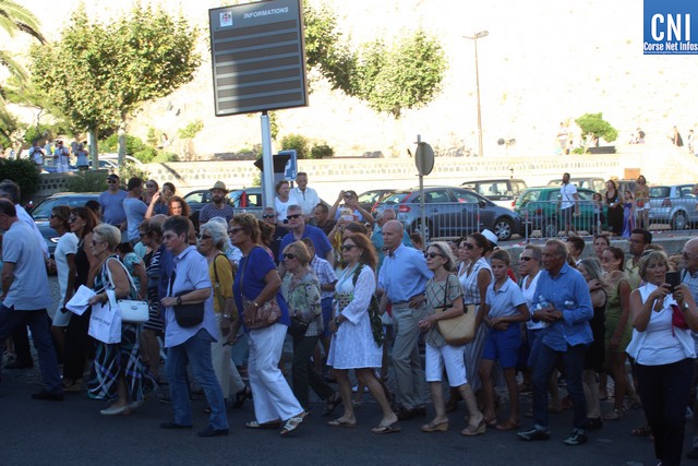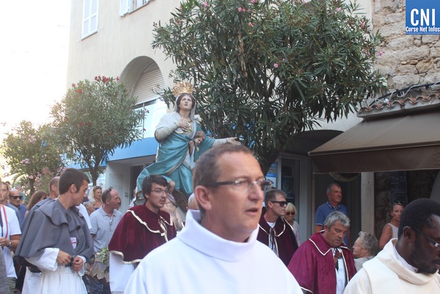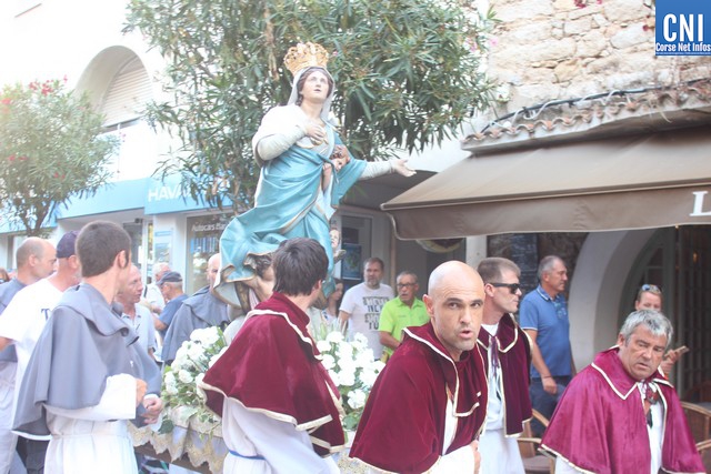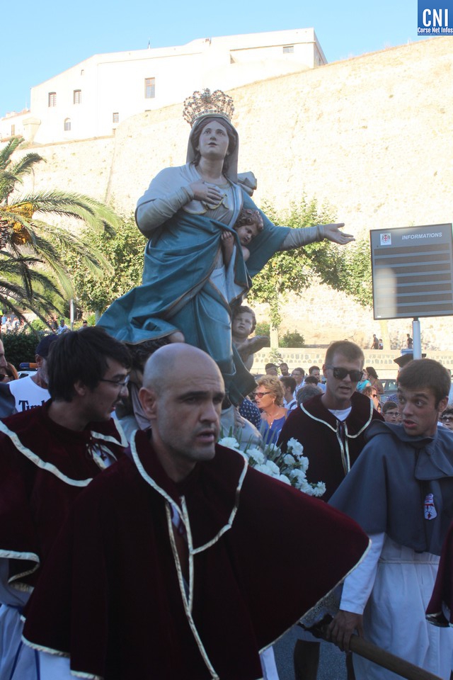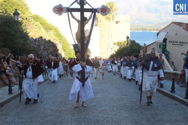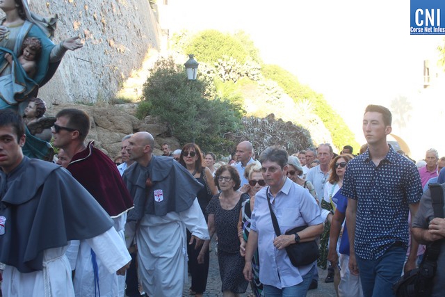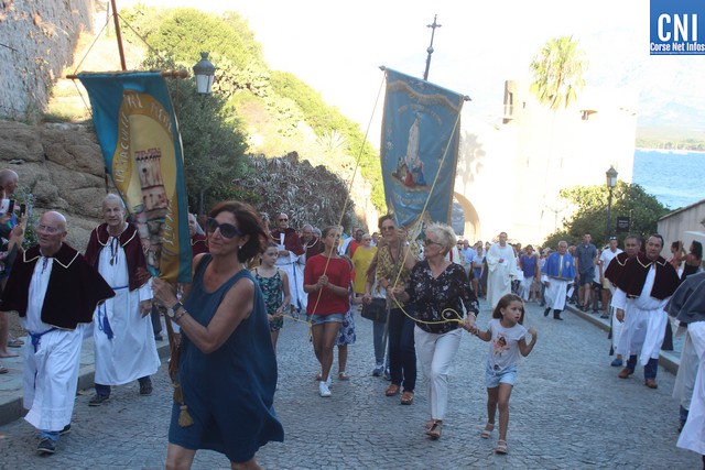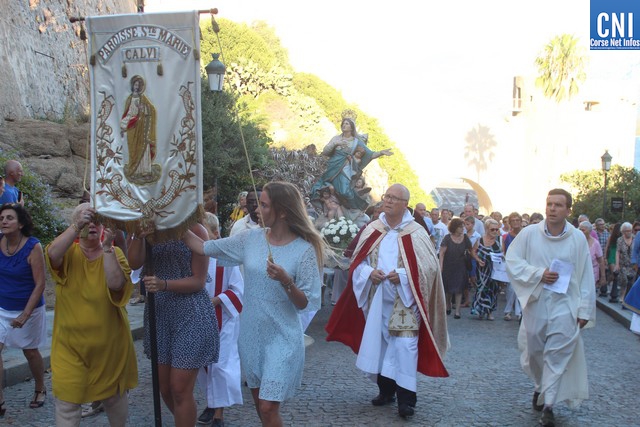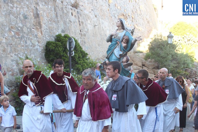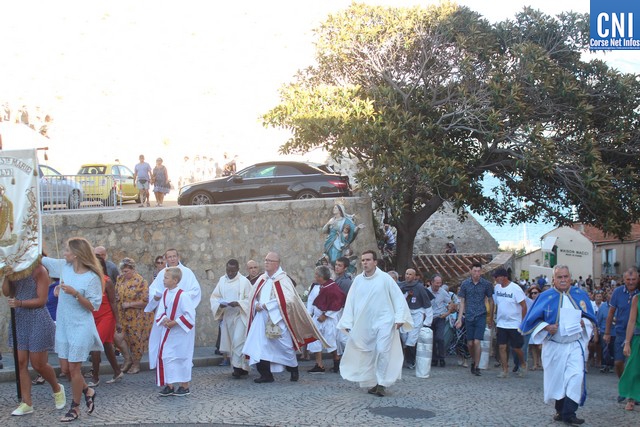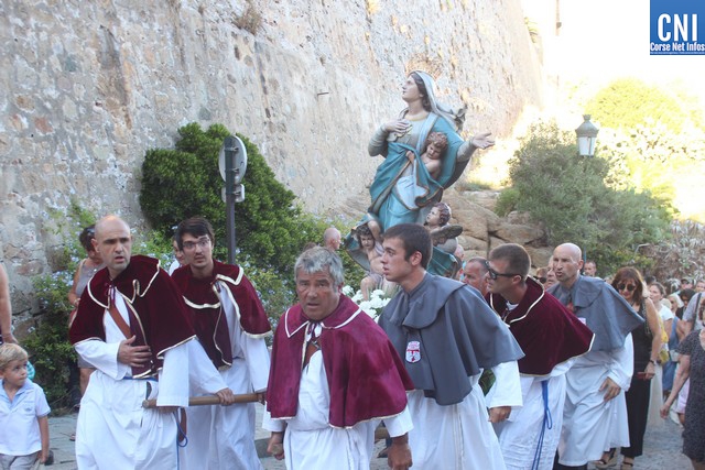 Une procession à laquelle prenaient part l'Abbé Ange Michel Valery, archiprêtre du secteur Calvi-Balagne, de nombreux prêtres et frères de différentes communautés, les confrères de Saint Antoine et Saint Erasme de Calvi mais aussi des chantres venus de plusieurs endroits. En tête de la procession, un confrère pieds nus portait la lourde croix du Christ. La Vierge Marie, elle portée par les confrères et suivie par une foule immense, au premier rang de laquelle on notait la présence d’Ange Santini, maire de Calvi, et de son adjointe à la culture, Marie Luciani, ainsi que de nombreux élus, de Jérôme Seguy, sous-préfet de Calvi, de Pasqua Carlotti, conseiller territorial... En soirée, à 23 heures, la fête de l'Assomption se poursuit en apothéose avec le traditionnel feu d'artifice tiré des remparts de la citadelle. Un spectacle pyrotechnique qui met en vedette la Tour du sel. Nous y reviendrons.