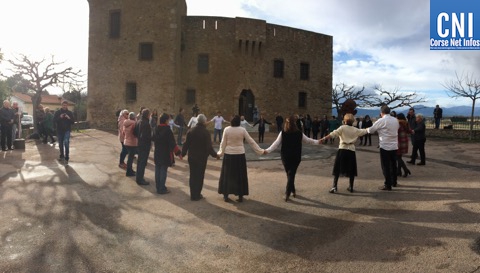 La manifestation s’est déclinée en deux temps. La journée du samedi, avec, une forte coloration musicale. Une dizaine de chanteurs et musiciens plus ou moins connus : Ceccè Brunini, Antone Marielli ou Ghjisè Ersa du groupe Diana di l’Alba), l’inamovible « passeur » Christian Andreani ou Paul Codaccioni, fidèle héritier d’une tradition de violoneux à Figari. Tous venus en leur nom propre ou plutôt au sein d’un « Cullettivu di Musicanti » corsi…Au menu, une heure et demi de quadrille avec des gens très à l’écoute, portés par les danseurs de la Penta et l’association A Ceppa. Trois conférences ont suivi « De la maison individuelle à la maison collective » (Sébastien Celeri, architecte et président de l’ordre), « Emprise et déprise : une société en son territoire » avec Fabien Gaveau, historien de la ruralité bien connu (il est déjà présent à Arghjusta pour les Journées du Patrimoine). Et enfin, une conférence de Christian Andreani sur la Via San Martinu, dont il est le président du réseau à l’échelle européenne. Avant de terminer cette première journée par le « cantu in paghjella » et des chants sardes, a cunfraterna di a Serra, portée par Ghjuvan Carlu Adami et accompagnés de chantres d’Orosei (Sardaigne) a chanté les Vêpres…
