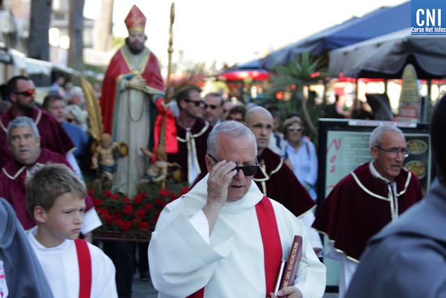 Après la messe c élébrée ce matin par l'Abbé Ange-Michel Valery, archiprêtre de Calvi-Balagne, fidèles et confrères de Saint Erasme et Saint Antoine se retrouvaient en l'église Sainte-Marie Majeure à 17h30, avant le départ en procession avec Saint Erasme porté par les confrères, à travers la ville.