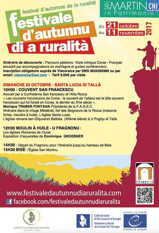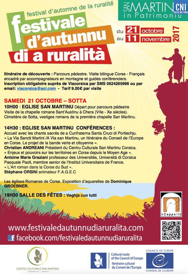 - Oui ! Tout le travail d’inventaire, réalisé depuis 10 ans par u Centru Culturale San Martinu Corsica, fera que, le 11 novembre 2018, je prendrai, pour un an, la présidence du réseau européen des centres culturels Saint-Martin. C’est la consécration d’un long travail accompli, mais il reste beaucoup à faire. Depuis l’inauguration de la Via sancti Martini à Tours en juillet 2016, des portions de cet itinéraire sont ouvertes dans les différents pays que traverse ce long chemin de 2500 kms. Notre objectif est, maintenant, d’ouvrir une portion de l’itinéraire en Corse avant 2019. La dynamique est bel et bien enclenchée dans les communes qui participent à ce festival depuis plusieurs années. Les actions se capitalisent. Une nouvelle réflexion émerge autour de la valorisation d’un patrimoine, en miroir avec un réseau européen qui offre un réservoir potentiel de gens intéressés par l’itinéraire. Au moment où se tiennent les assises du développement durable, il serait temps que la collectivité territoriale se prononce, enfin, sur ce projet.