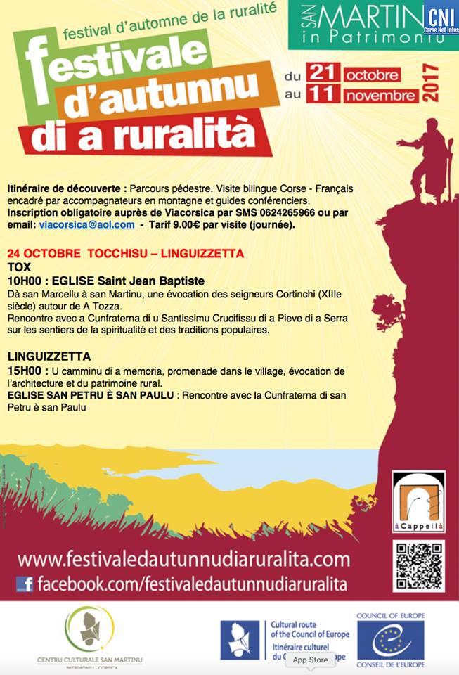 - Le festival s’étend, cette année, aux territoires du Sud de la Corse. Il débute, ce samedi, à Sotta qui est un lieu martinien avec un patrimoine exceptionnel : du bâti, des vestiges d’église romane, notamment la première chapelle San Martinu. La plaine de Sotta se nomme : « A piana di San Martinu » et est mentionnée, au 18ème siècle, dans le plan Terrier, comme « la commarque de San Martino ». Le festival se déplace, dimanche, à Santa Lucia di Tallà, village médiéval, fief des Seigneurs de la Rocca, qui possède une église et un vieux site San Martinu au hameau de Bisè. Le 24 octobre, nous serons pour la première fois à Tocchisu (Tox) qui est, aussi, un très vieux site médiéval, notamment, du 13ème siècle, et où il existe un lieu qui se nomme « A Tozza di San Martinu », un patrimoine lié aux seigneurs Cortinchi. Il y aura, durant toute la durée du festival, un éclairage sur cette seigneurie féodale qui impacte le territoire de la Corse jusqu’à Patrimoniu et Ville-di-Pietrabugnu.