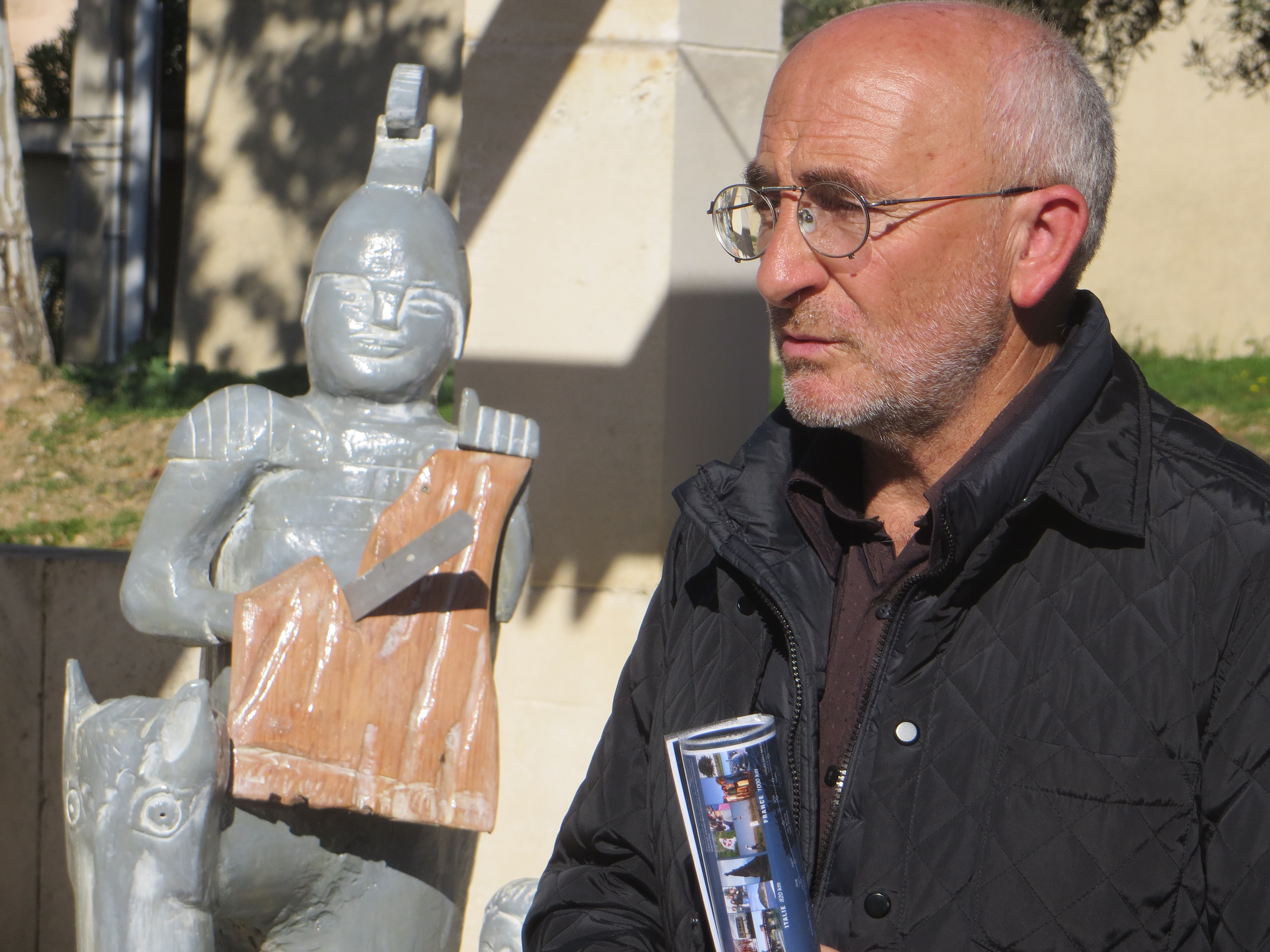 Christian Andreani près de la statue de San Martinu, une oeuvre d'André Truchon de Patrimoniu. Photo Maria Cleia Andreani.