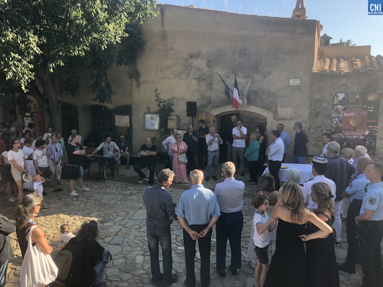 Gilles Simeoni président de l'exécutif, François Ravier prefet de Haute-Corse et Florent Farge, sous-préfet Balagne Conca d'Oru. Josephine Martelli, maire de Pigna ouvrait les discours. "Vous êtes venus nombreux pour nous accompagner dans cette ouverture du 29e festival Festivoce. Mais il y a plus de 29 ans que nous faisons de la musique à Pigna. L’histoire commence en 1964" rappelaitJoséphine Martelli, "par la création de la Corsicada qui est la relance de l’artisanat en Corse. Et avec les artisans sont venus les musiciens. Sans oublier notre président du centre culturel Tony Casalonga qui est devenu un centre national de création musicale. Depuis nous constatons une vraie évolution dans la notoriété de pigna, qui ne cesse d'évoluer".