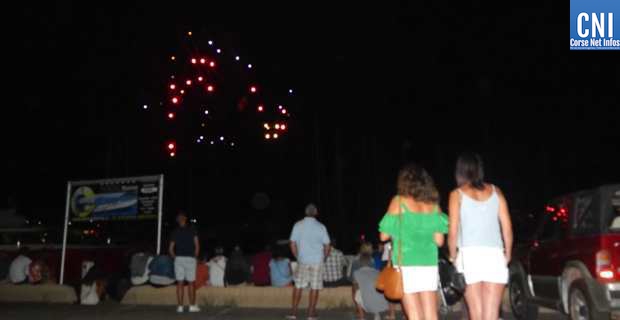 En attendant 23h, l’heure prévue pour le feu d’artifice, le petit vent, qui sévissait, fit naître quelques doutes sur sa possible annulation. Mais à 23h précises, le port fut plongé dans le noir et les « aah !! » de satisfaction ont fusé de parts et d’autres. La magique illumination colorée du ciel s’est déroulée pendant une demi-heure pour le plus grand plaisir des yeux. Les applaudissements de la foule se sont mêlés ensuite aux sirènes des bateaux qui ont retenti dans la nuit, saluant la fin de ce feu d’artifice, et en remerciements à cette magnifique soirée offerte par la municipalité de Porto-Vecchio. Le concert put reprendre ensuite pour se terminer vers 3h du matin.