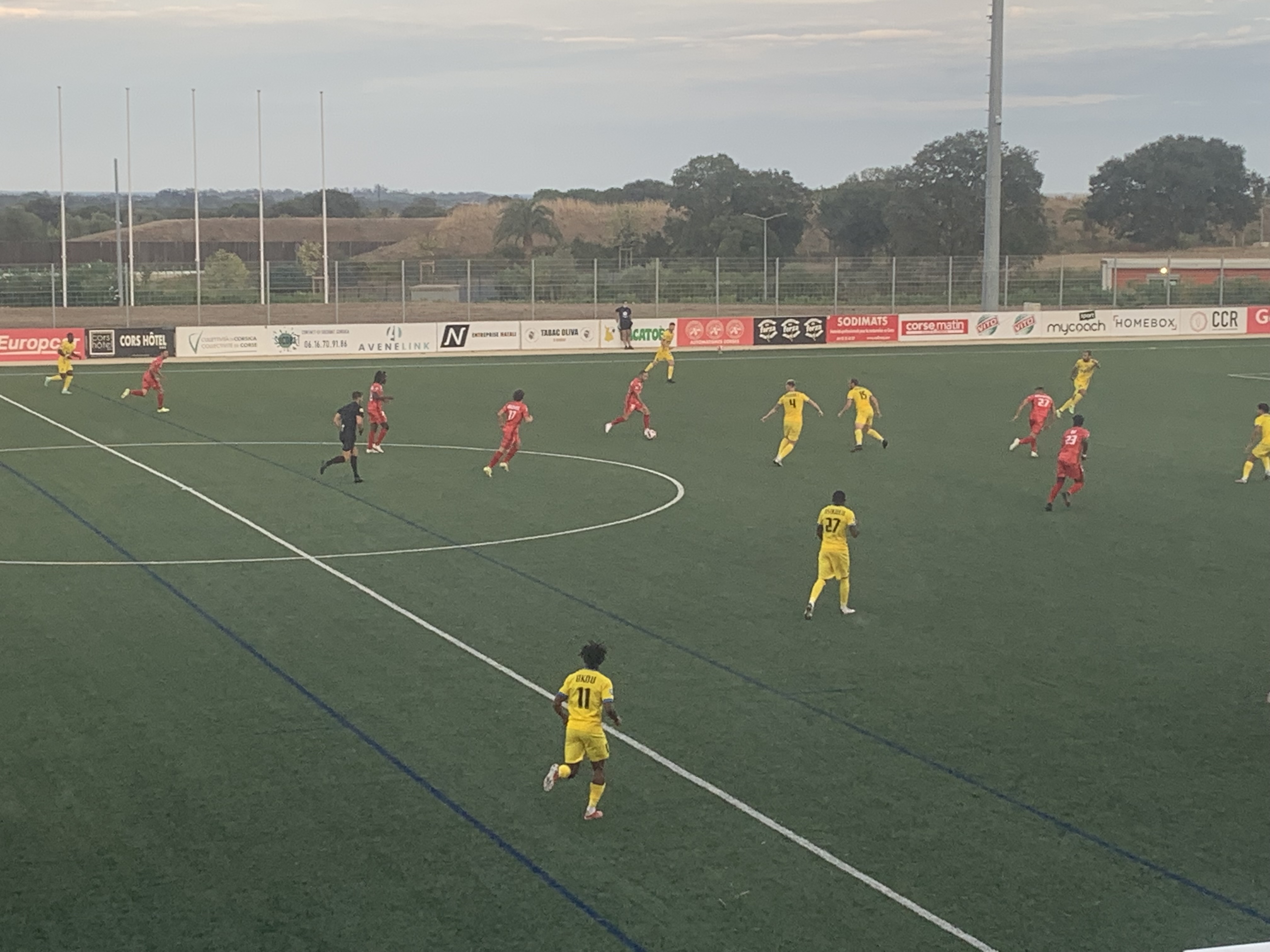 16ème : Centre tir de la gauche de Okou, dévié au passage par le goal corse mais aux 6 mètres, Moussaki propulse le ballon dans le but corse.