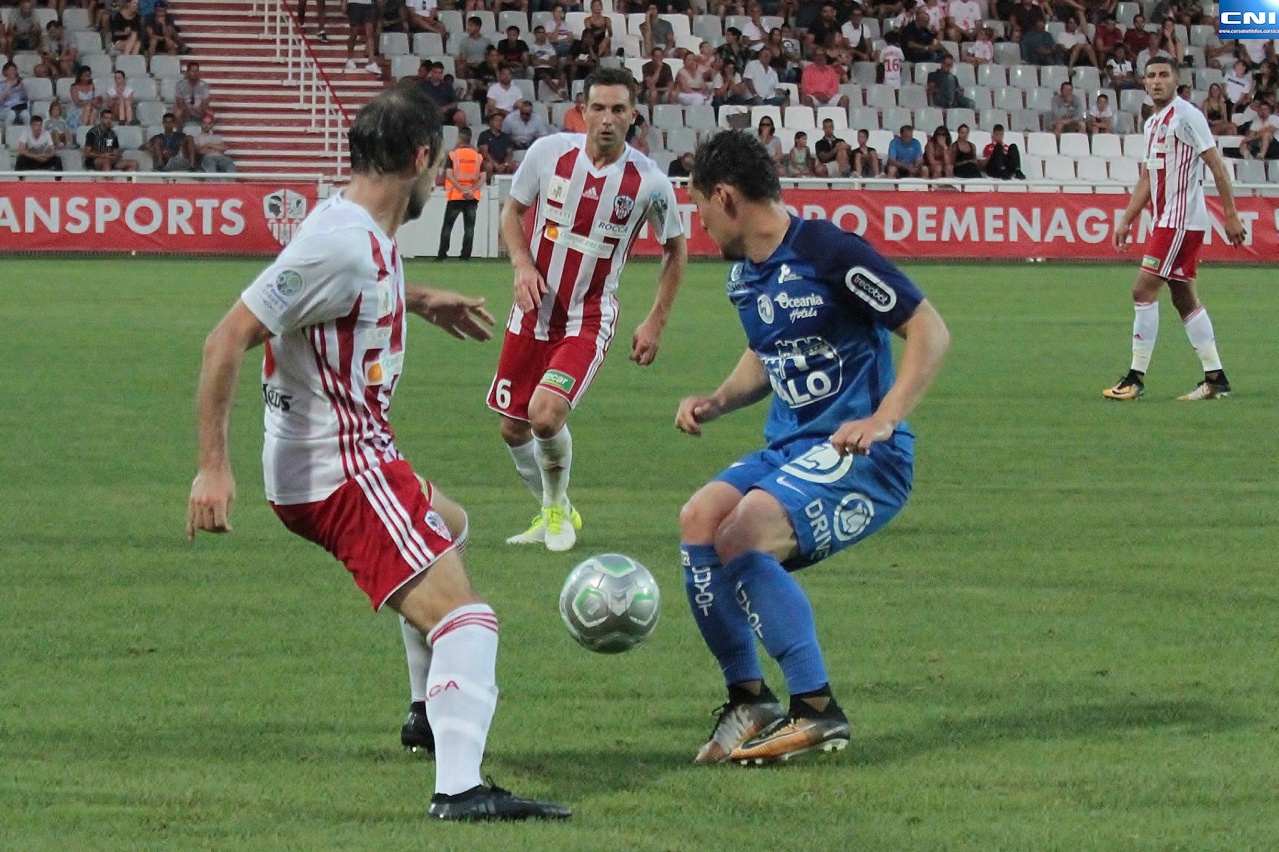 L’ACA veut confirmer ses très bonnes dispositions en recevant une pointure de Ligue 2. Un bon test pour les hommes d’Olivier Pantaloni qui retrouvent un dispositif en 4-2- 3-1 avec Nouri en lieu et place de Maazou. La chaleur n’empêche pas les locaux de prendre vite les devants. Berthommier allume la première banderille côté breton (1 e), imité par une belle frappe de Coeff bien captée par Goda (13 e ). Entre-temps, Yan Boe Kan a eu la bonne idée de s’infiltrer dans la surface adverse et de tromper Fabri d’un tir croisé. (9 e ). Mais l’homme de cette première période sera incontestablement Wissa. Par ses prises de risque, ses slaloms et ses tirs, il sera un poison constant pour la défense adverse. Passeur sur Nouri au quart d’heure de jeu, lequel perd son duel face au gardien brestois, il allume le gardien adverse sur coup franc (30 e ) et se fait reprendre d’un crampon en bout de course (34 e ). Et Brest dans tout ça ?