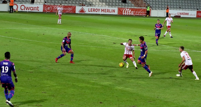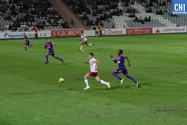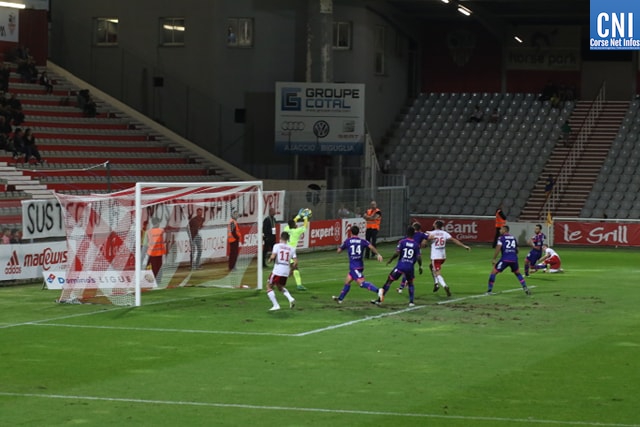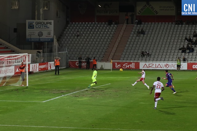 La première période est mi-figue mi-raisin. Convalescents, les Ajacciens alternent le bon et le moins bon. Pire, ils concèdent un premier but sur un ballon perdu par Nouri au milieu, une action convertie par Nestor d’une belle frappe (24e). On croit que la soirée va virer au cauchemar.