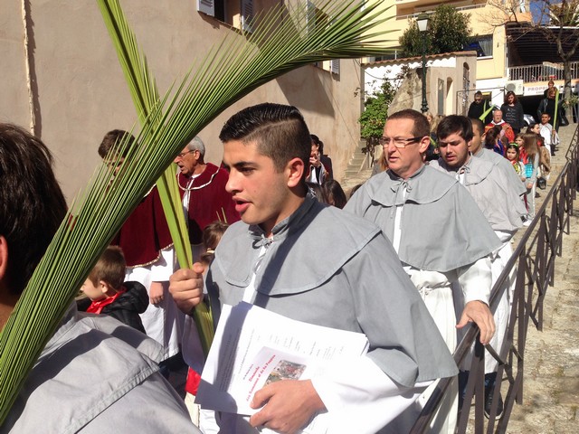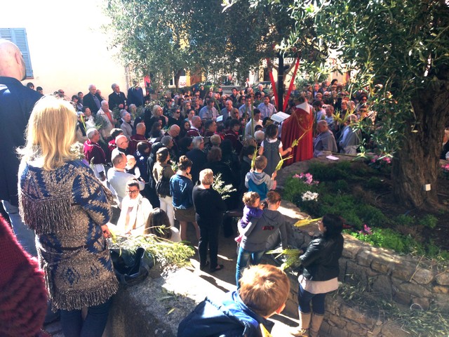 avant de poursuivre: " Levez vos Rameaux, prions le Seigneur, Dieu tout puissant, daigne bénir ces Rameaux que nous portons".