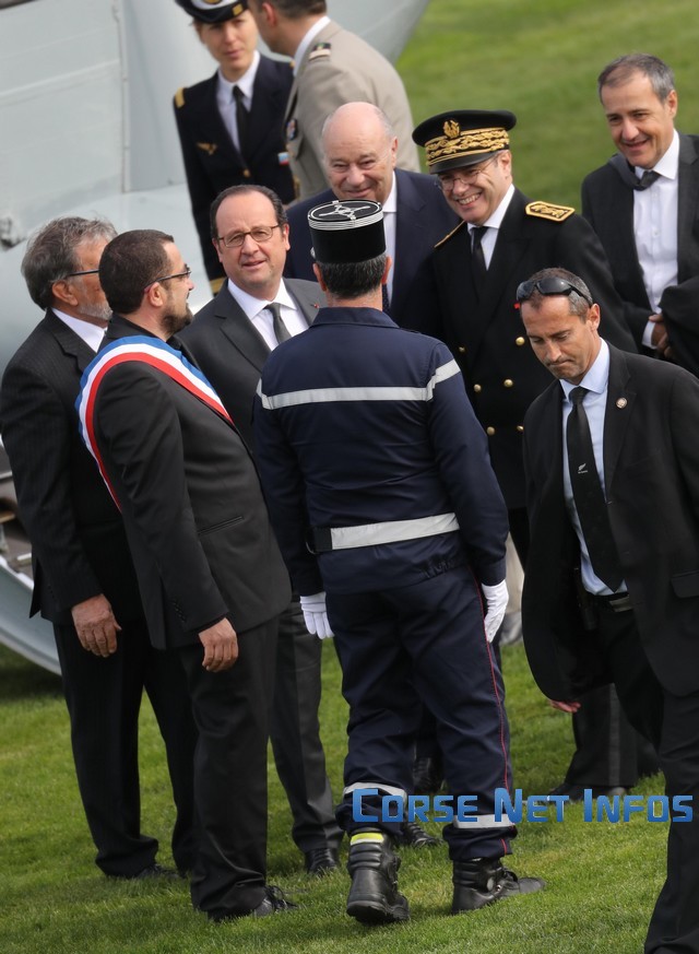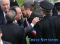 Le chef de l'Etat s'est aussitôt dirigé vers Hyacinthe Mattei, Maire honoraire et son fils Joseph Mattei, maire de la commune, pour une franche accolade, avant de saluer quelques personnes, et de s'engouffrer dans une voiture pour se diriger vers le cimetière communal où devait se dérouler la cérémonie d'inhumation des cendres de l'ancien premier ministre Michel Rocard, grand serviteur de l'Etat, décédé à Paris en juillet 2016.