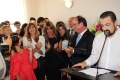 " Vous avez eu cette volonté de non seulement accueillir des enfants, mais aussi de leur donner une école d'une qualité environnementale et éducative exceptionnelle. L'école de Monticellu est célèbre non pas simplement parce que Hyacinthe était le maire de cette commune lors de sa réalisation mais parce que l'école est devenue une référence non seulement pour la Corse mais pour la France toute entière en matière de rythmes scolaires. C'est ici qu'a été expérimenté, avant même que les pouvoirs publics durant mon quinquennat aient voulu donner à cette réforme des rythmes scolaires l'ampleur que nous pensions nécessaire. C'est ici que l'on a pu expérimenter et faire apparaître que, les élèves, dès lors qu'ils sont accompagnés peuvent être davantage épanouis sur une semaine de cinq jours et avec bien sur des activités extra scolaires. C'est à vous que nous le devons.