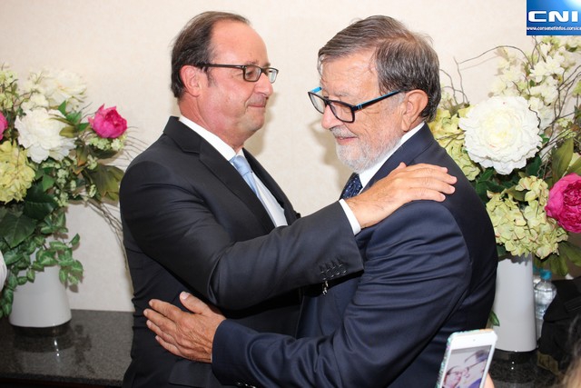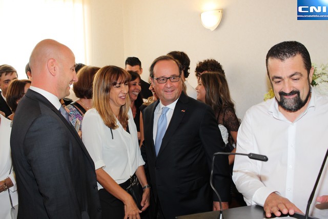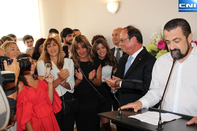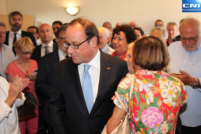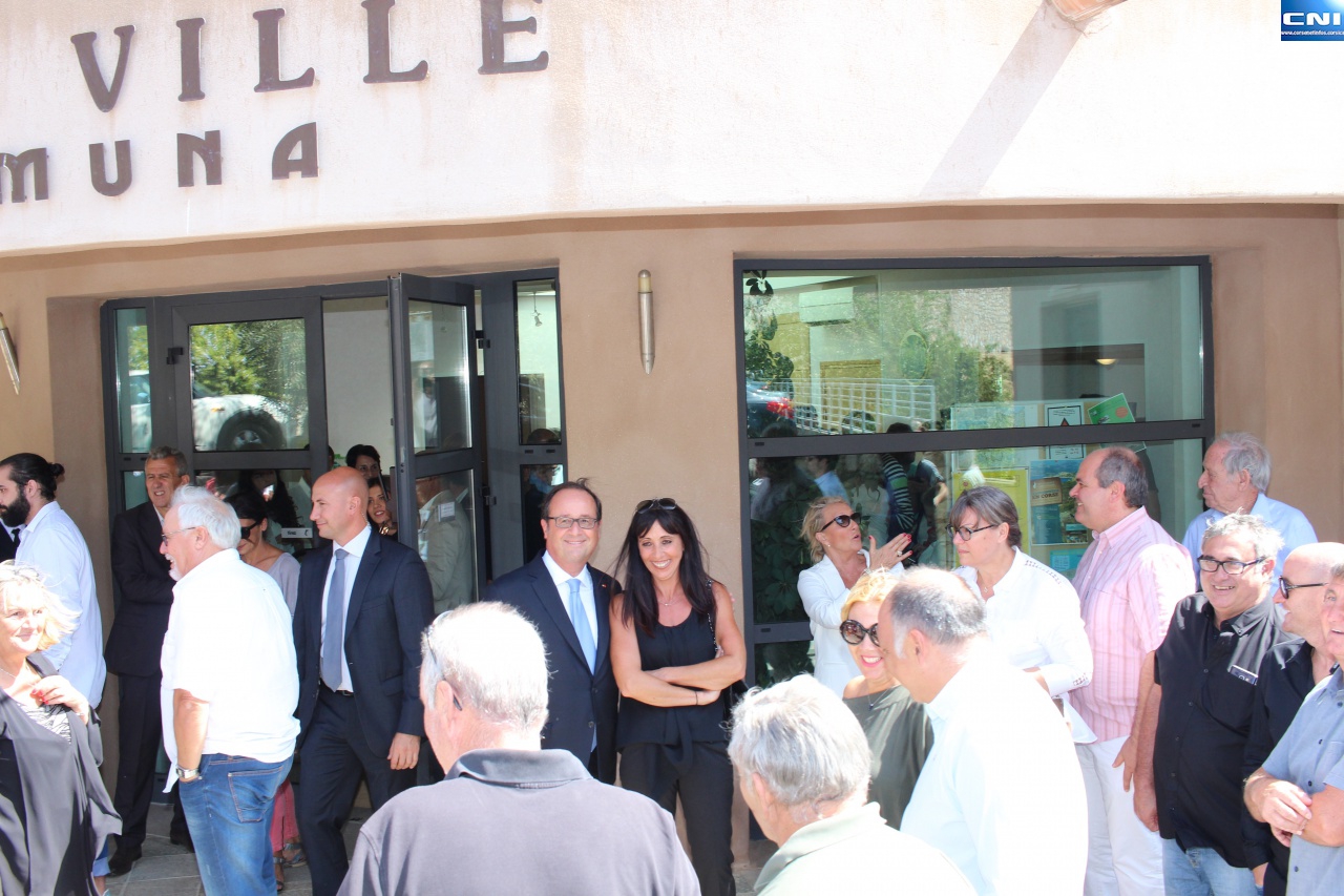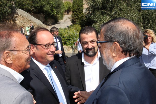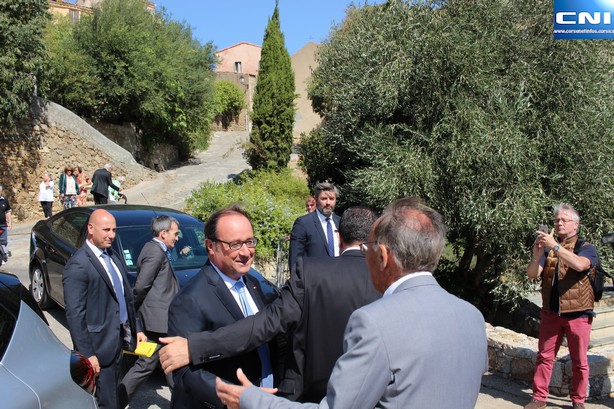 A 11h30, c'est le maire de la commune Joseph Mattei et son père Hyacinthen qui accueillaient François Hollande, en présence d'une foule très nombreuse.