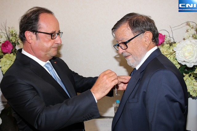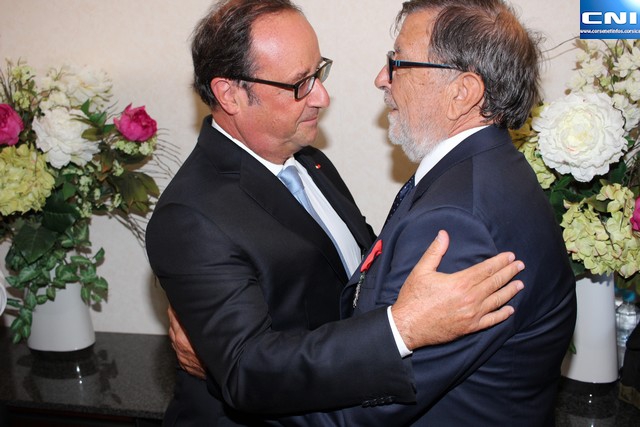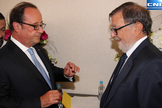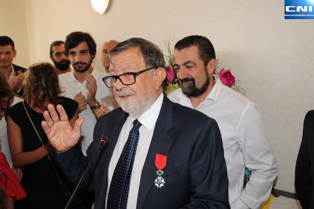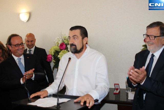 et en lui reconnaissant sa singularité et, c'est pourquoi je tenais ici à travers l'hommage à l'élu de la République à saluer tous les élus de Corse et à remettre ici à Monticellu, en présence de sa famille, de sa compagne, de ses élus qui l'ont toujours accompagné et de ses amis les insignes de chevalier de la Légion d'honneur".