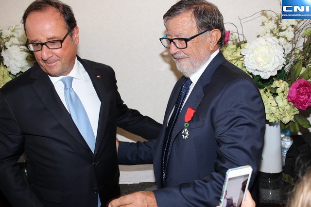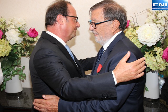 Sous un tonnerre d'applaudissements et non sans émotion, François Hollande prononçait le rituel d'usage avant d'épingler la Légion d'honneur sur le revers de la veste de Hyacinthe Mattei avant de lui donner l'accolade.