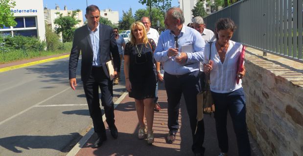 Gilles Simeoni, maire de Bastia, François Pupponi, président de l'ANRU, Emmanuelle de Gentili, 1ère adjointe en charge de l'urbanisme, et Alain Thirion, préfet de Haute-Corse au nouveau centre culturel Alb'Oru qui sera inauguré le 25 septembre.