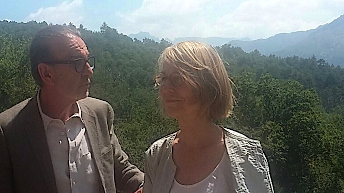 La ministre a également rencontré les élus de Haute-Balagne, en plein air sous les châtaigniers et les chênes avec comme décor les montagnes, avant de visiter l'outil théâtrale unique qu'est "A Stazzona".