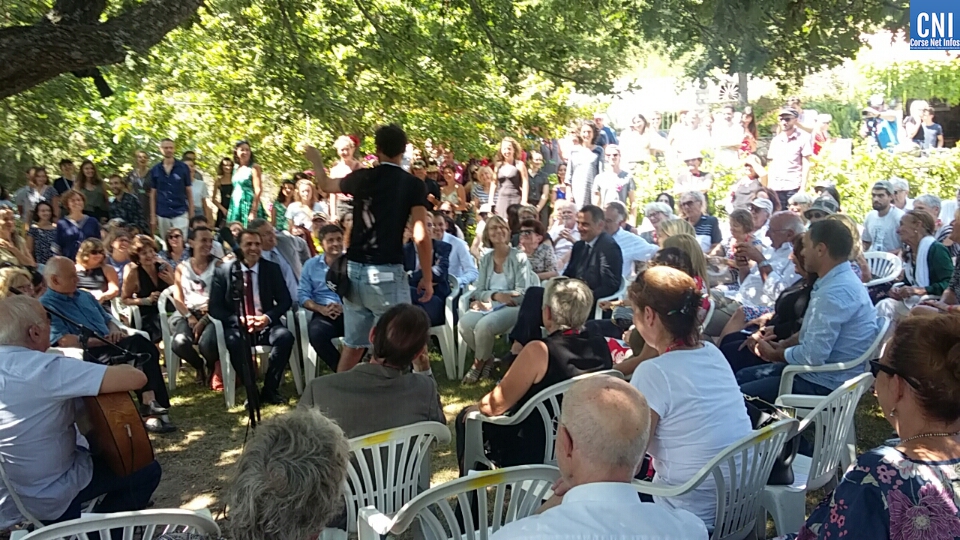 Sur le champ de foire, David Calassa, présentait son conseil municipal et de nombreux élus de communes voisines, avant de s'adresser brièvement à la ministre de la Culture pour lui dire combien avec son conseil municipal et les membres du Foyer rural il était honoré de sa visite et de tout l'intérêt qu'elle témoignait à cette fiera di l'amandulu.