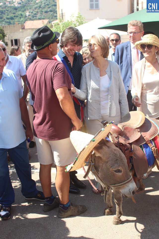 A son arrivée, la ministre était accueillie par le maire de la commune David Calassa, le président du Foyer Rural d'Aregnu, organisateur di A Fiera di l'Amandulu, Gilles Simeoni, président de l'Exécutif de Corse, Jean-Félix Acquaviva, dépuré de la Corse, Pasquale Carlotti , conseiller territorial, originaire d'Aregnu...