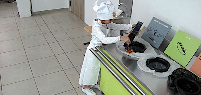 Lors des repas un chef de table, nommé chaque semaine, nanti d’un tablier et d’une toque, est chargé de collecter les déchets de table et de les déposer dans 3 compartiments : « Restes alimentaires », « pain » et « Emballages et serviettes en papier ». Des ateliers ludiques expliquent aux enfants les différentes manières de procéder.