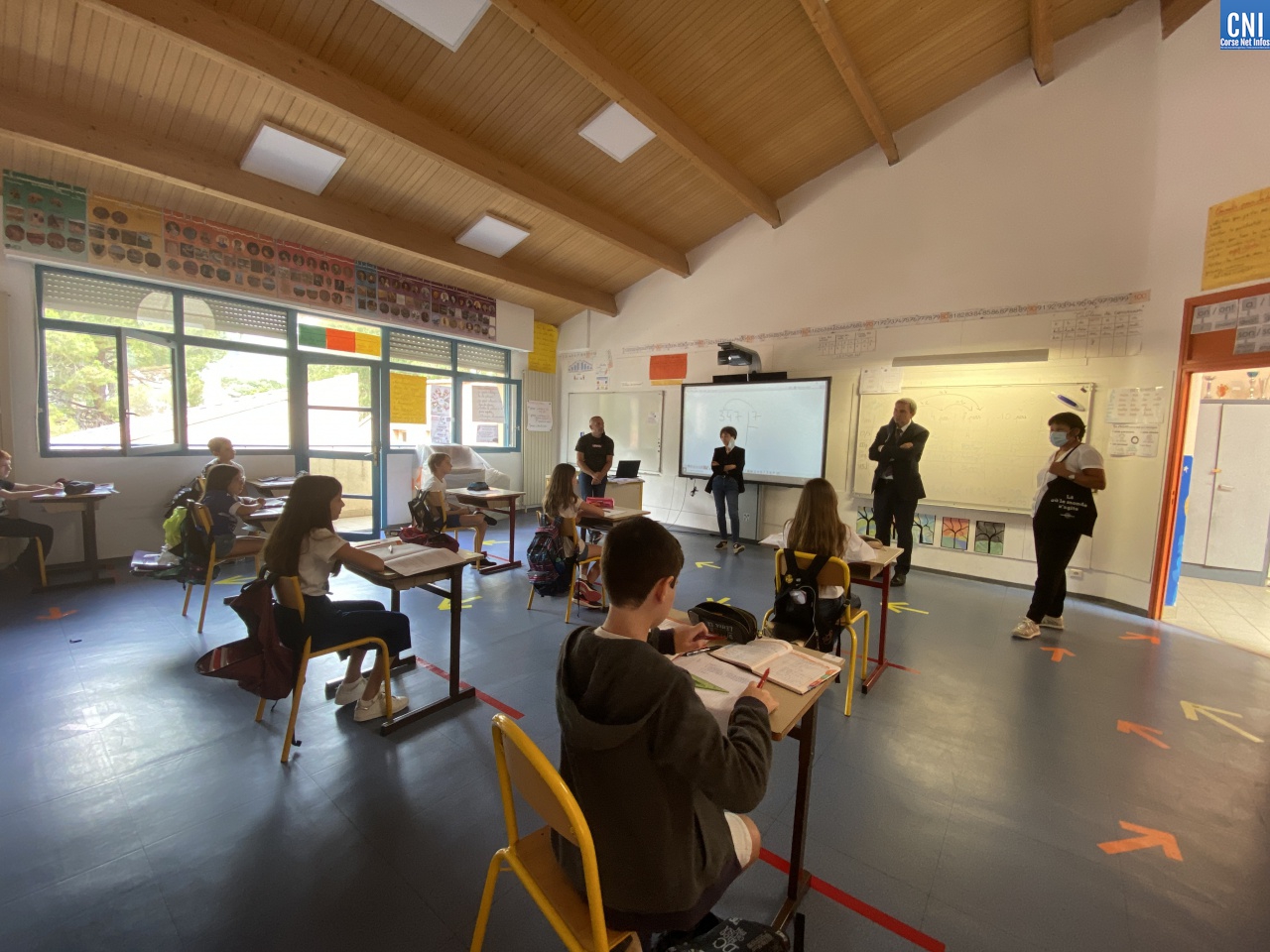 Ce lundi 8 juin, la cloche a, enfin, sonné et les enfants de Furiani ont pu rentrer en classe à l'école U Rustincu à Furiani. A leur arrivée, le rituel est bien cadré : lavage de main au gel hydro-alcoolique, distance d'un mètre entre chacun et parcours fléché jusqu'à leur place attitrée. Toute cette petite cérémonie bien orchestrée s'est déroulée en présence de Christian Mendivé, directeur académique des services de l'Education Nationale de Haute-Corse, sous l'œil bienveillant de Marie-Josée Massei, la directrice de l'école qui connait chaque enfant présent en ce jour. Il faut dire que depuis la réouverture de l'école le 2 juin, seuls 21 d'entre eux ont rejoint les bancs de l'établissement sur les 314 enfants habituellement scolarisés.