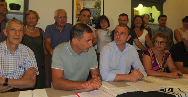Les militants et élus de Femu a Corsica rassemblés autour de Gilles Simeoni et Jean-Christophe Angelini.