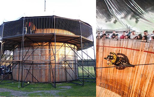 Autre grand moment, celui du "Mur de la mort". Un show aussi mythique qu'exceptionnel. Des cascadeurs motards conduisent à l'aide de la seule force centrifuge dans un silo aux murs verticaux au son d'un rock surpuissant. Âmes sensibles s'abstenir.