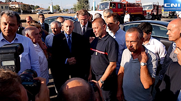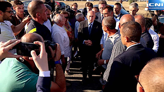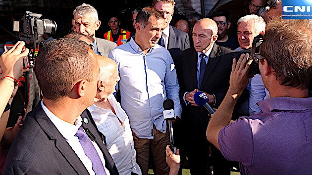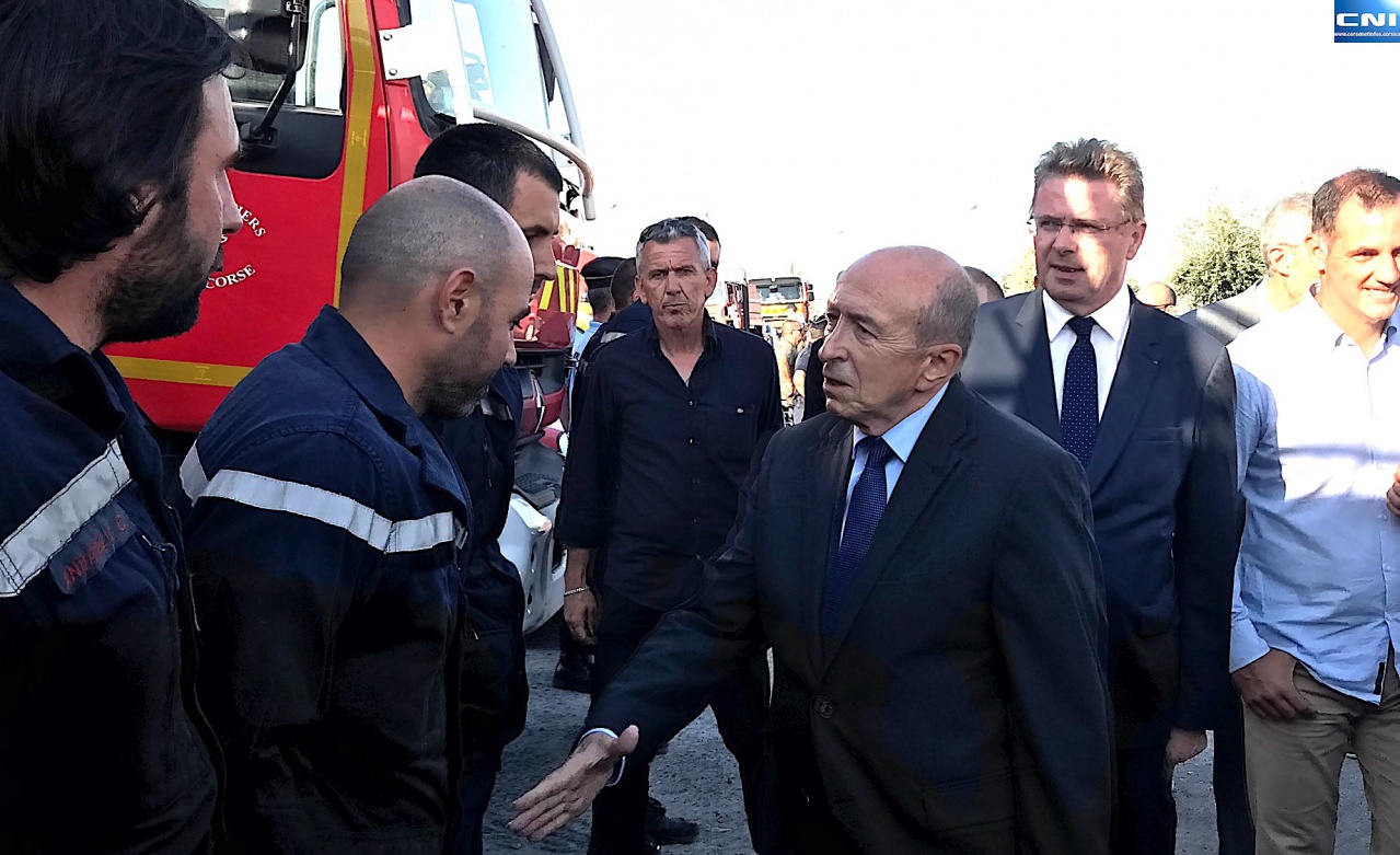 Accompagné par Michel Castellani, le député de la première circonscription de Haute-Corse, qui a effectué le voyage en sa compagnie, Gérard Collomb ne s'est guère attardé au rond-point du Numéro 4 où est installé depuis lundi le poste de commandement du Service d'incendie et de secours de la Haute-Corse.