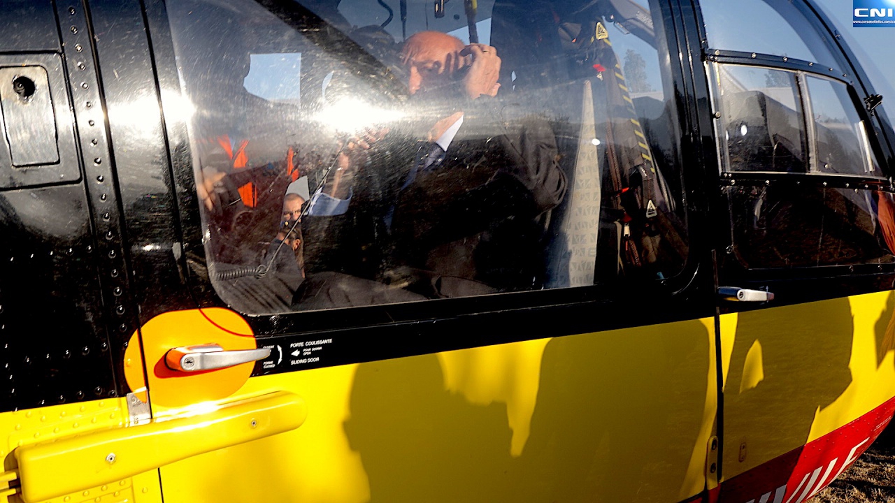 Le ministre accueilli notamment par Gilles Simeoni, président du Conseil exécutif, Jean-Guy Talamoni, président de l'assemblée de Corse, François Orlandi, président du Conseil départemental de la Haute-Corse et président du conseil d'administration du Sdis, le colonel Charles Baldassari, directeur du Sdis, Jean-Felix Acquaviva, député de la Haute-Corse, François Tatti, président de la CAB; et de nombreux maires de l'arrondissement a, tout d'abord, tenu a saluer, en compagnie de Gérard Gavory, le préfet du Département; les personnels engagés sans discontinuer sur le terrain depuis lundi, pris la mesure de la situation sur le terrain au poste de commandement puis a pris les airs sur l'hélicoptère de la Sécurité pour survoler la zone dévastée par le feu.