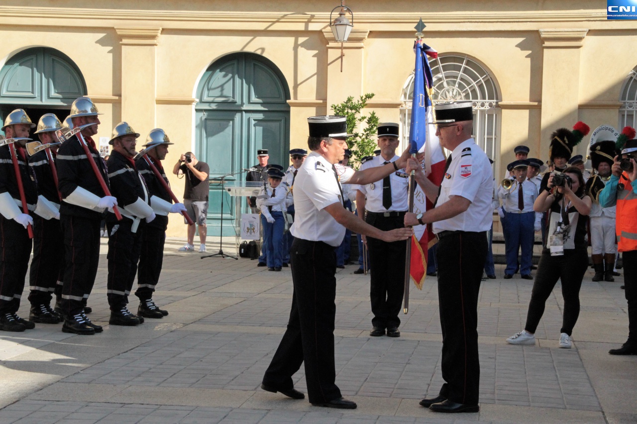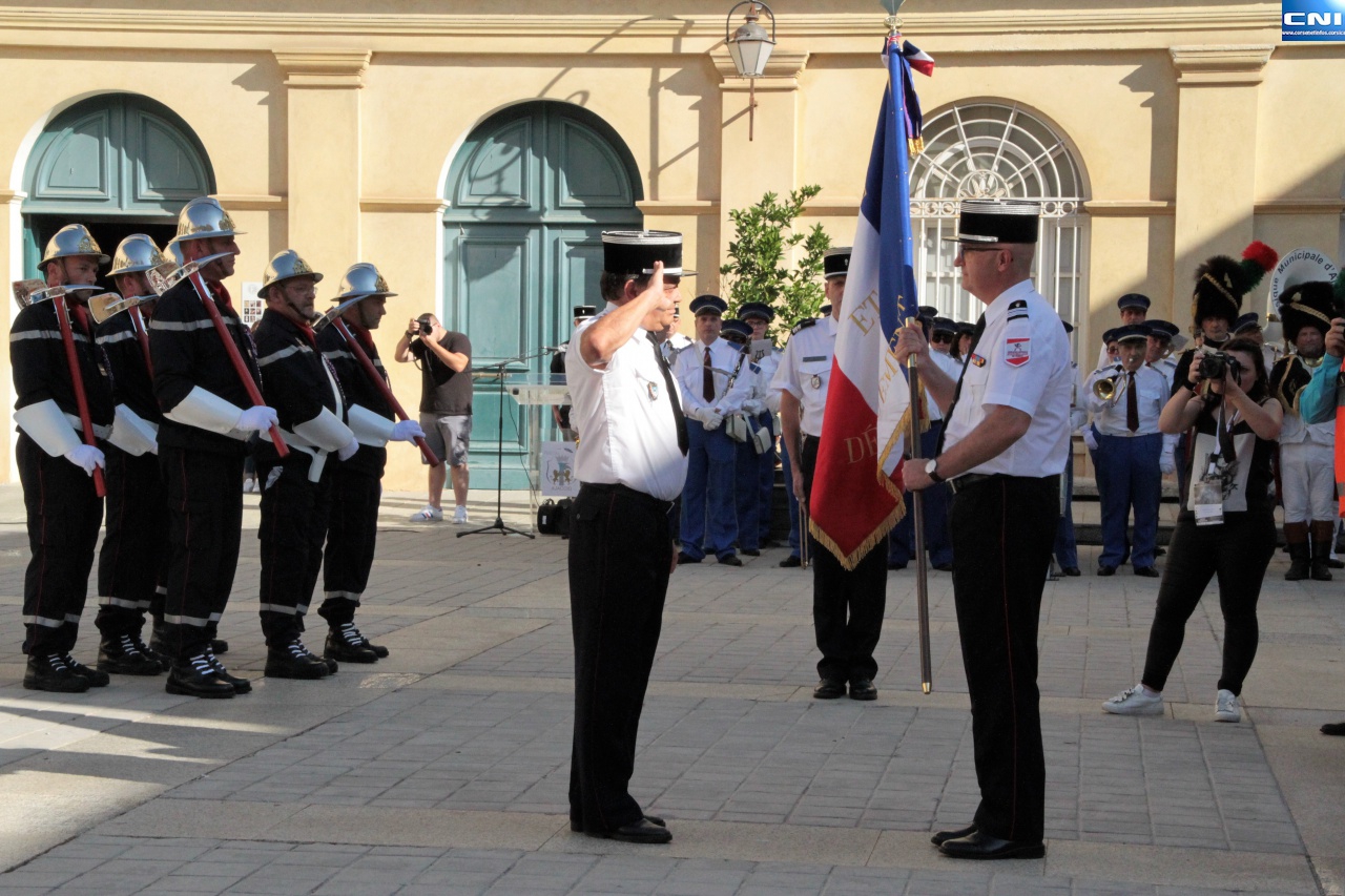 A 15 heures dans la cour du Palais Fesch la cérémonie de passation du drapeau de la fédération nationale des sapeurs pompiers, entre le président de l'UDSP 2A et celui de l'UDSP 01, a donné le clap final de ces trois jours de congrès.