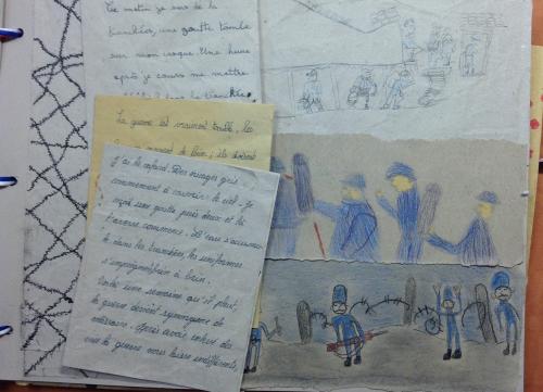 Les élèves de CM2 A de madame Mata ont ainsi confectionné dessins et lettres personnalisés dépassant la réalité. Par ces bribes de fiction, ils ont pu ajouter à cette triste vérité un peu de leurs sentiments, de leurs peurs ou de leurs angoisses. Tous touchés par cet évènement lointain, quelque soient leurs origines, les enfants ont ainsi pu se rappeler qu'eux aussi, en Corse, sur le continent, au Maroc ou en Tunisie, ont tous eu un ancêtre touché par le conflit.