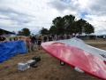 Grande réussite pour ce troisième meeting des têtes en l'air qui avait débuté en matinée sous de bien trop gris nuages, lesquels se sont estompés en cours de journée à la faveur d'un léger vent d'ouest qui écartait subrepticement toute velléité de pluie. Toutefois, le ciel instable en altitude n'a pas permis aux parachutistes de démontrer leurs précisions d'atterrissage, les conditions météorologiques n'étant pas favorables à la pratique du saut.