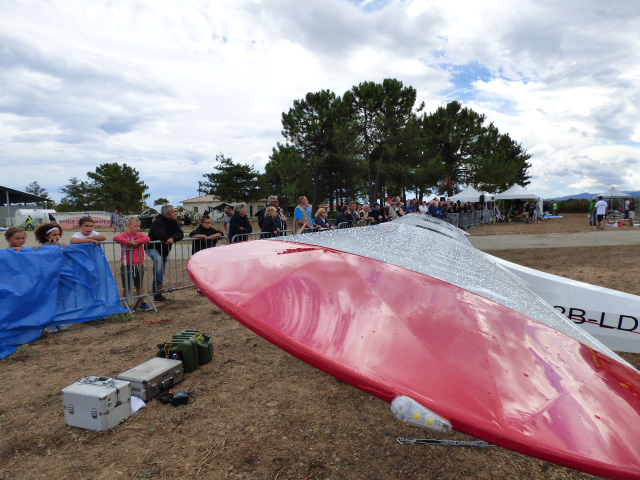 D'aéronefs grandeur nature, il en a été question également cet après midi avec une brillante démonstration de planeur acrobatique. Aux commandes de l'engin aussi majestueux qu'un oiseau , Philippe Legendre s'est appliqué à démontrer à bord de son planeur la capacité d'évolution de ce dernier. Largué finalement à basse altitude par l'avion tracteur, le pilote chevronné a entamé toute une série de grands huits paresseux qui semblaient ne jamais en finir. Dans le bruissement de ses grandes ailes mises à rude épreuve, l'oiseau blanc s'est posé en beauté sur la piste 36 face au nord, sans un bruit, laissant littéralement pantois les spectateurs ébahis par tant de beauté et de savoir faire.