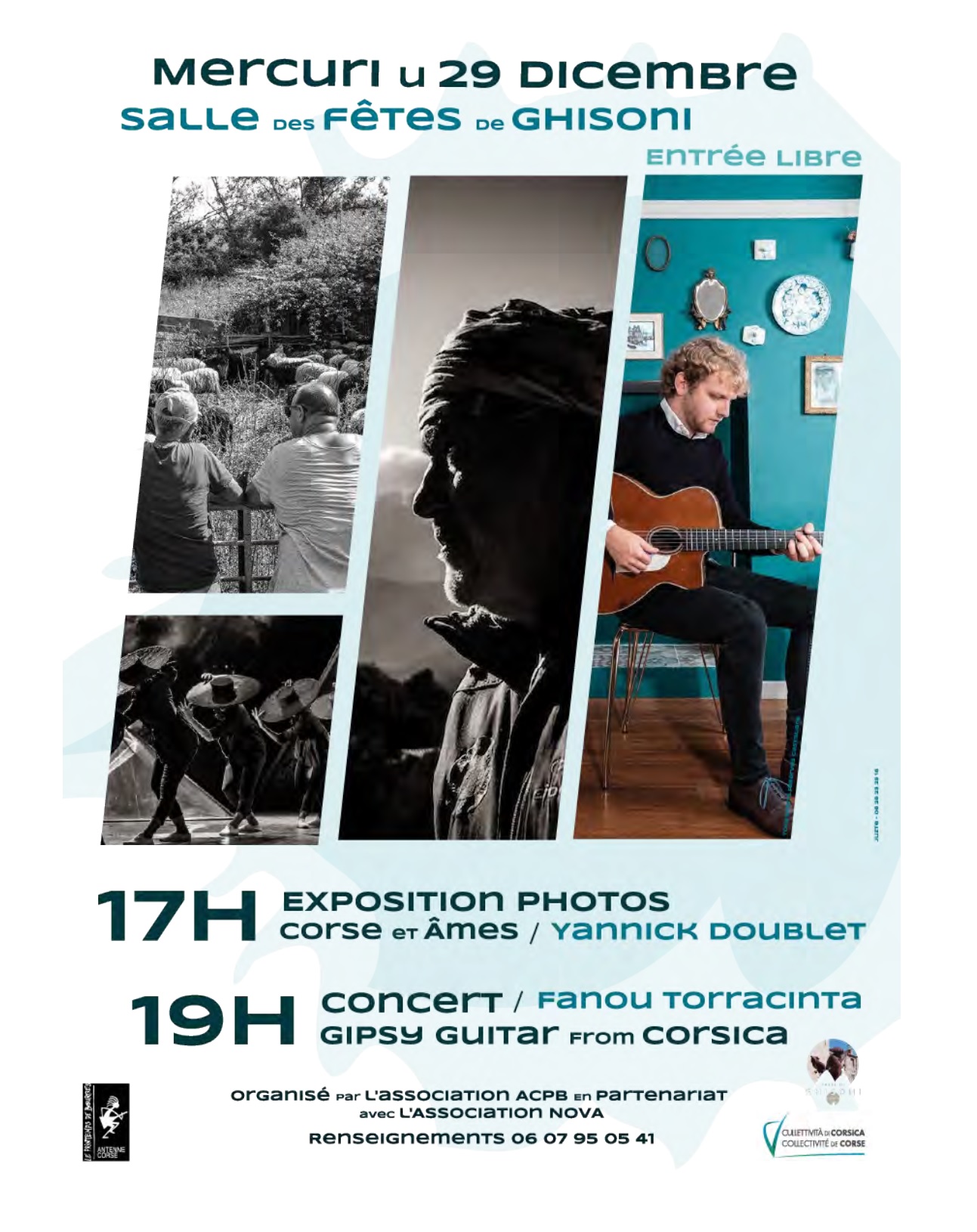 Ce mercredi 29 décembre à partir de 17 heures à la salle des fêtes du village de Ghisoni se tiendront exposition* et concert* de deux artistes corses : Yannick Doublet, photographe, et Fanou Torracinta, guitariste.